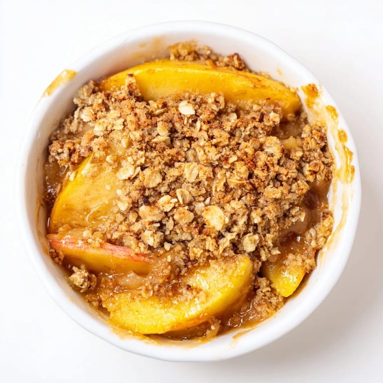 - Scatter the crumble evenly over the apples and bake 35–40 minutes until golden and bubbling.