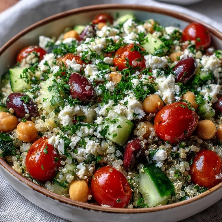 Pin This My friend Sarah showed up at my door one Saturday with a container of this salad, insisting I try it before my afternoon run. I was skeptical about cold grains being satisfying, but one forkful proved me completely wrong. The quinoa was somehow both fluffy and hearty, the chickpeas added this wonderful chew, and the lemon dressing tied everything together with a brightness that woke up my taste buds. I ended up eating half the container on her porch, and she laughed, saying she knew I'd get it. That salad fueled my best five-mile run in months, and I've been making my own version ever since.