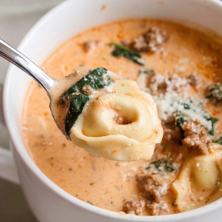 Pin This The kitchen window was fogged with steam, and I was standing over a pot that smelled like every good decision I'd made that week. I wasn't following a plan—just tossing in what I had: some sausage, a bag of tortellini I'd bought on impulse, and spinach that needed using. What came together was this soup, rich and satisfying in a way that made me wish I'd made a double batch. It's been my go-to ever since for nights when I want something that feels like a hug without the fuss.